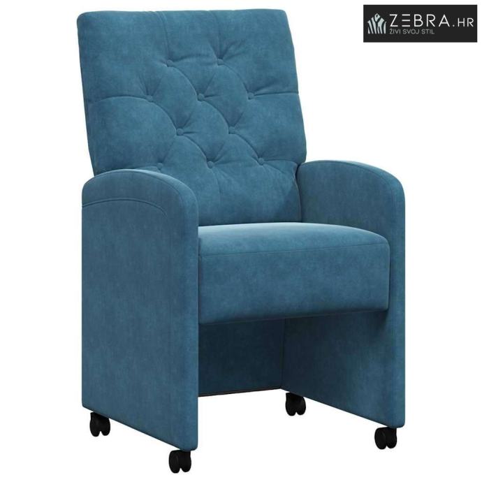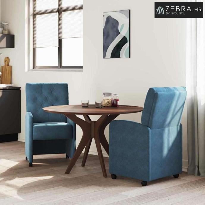 Površina od premium baršuna Ove stolice imaju luksuznu baršunastu tkaninu koja se glatko osjeća pri dodiru, čineći svaki prostor privlačnijim. Baršun dodaje blagi sjaj i bogatu teksturu, pa su ove stolice klasičan izbor za svaki blagovaonski prostor. Materijal se lako održava i osigurava dugotrajnost. Ergonomski dizajn naslona Oblik naslona poboljšava vašu posturu i smanjuje opterećenje tijekom dugog sjedenja. Ova funkcionalnost nudi dobru podršku, čineći ih izvrsnim izborom za blagovanje, bilo s radom, opuštanjem ili ugostiteljstvom. Oblik stolice se prilagođava vašem tijelu za maksimalnu udobnost. Stabilan okvir od šperploče i metala Čvrst okvir kombinira šperploču i metal, pružajući stabilnost i dugotrajne performanse. Odabrani materijali podržavaju veću težinu i dodaju stilsku eleganciju. Kotači za mobilnost Ove stolice dolaze s kotačima, pa ih možete lako pomicati po prostoru, olakšavajući aranžiranje. Bilo da premeštate za večeru ili čisteći, kotači omogućuju jednostavne promjene bez podizanja. Laka uputstva za njegu Održavanje ovih stolica je jednostavno s redovitim suhim čišćenjem. Usisavanje ili nježno četkanje pomaže očuvanju površine. Za mrlje izbjegavajte jake kemikalije i koristite nježne sredstva za čišćenje tkanina za dugovječnost i ljepotu. Boja: Plava