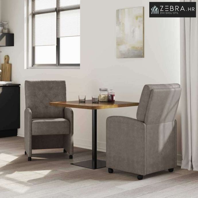 Umjetna koža Uživajte u modernom izgledu koji se lako održava. Ovaj materijal je otporan na trošenje i zadržava svoj izgled uz malo truda, čime stolice dodaju stil vašoj blagovaonici, a posebno su praktične za obitelji. Čvrsti okvir od šperploče i metala Ove stolice imaju robusnu konstrukciju koja jamči stabilnost i dugotrajnost. Namijenjene su dugotrajnoj uporabi i nude pouzdanu kvalitetu koju kupci očekuju. Ergonomska udobnost Uživajte u udobnosti zahvaljujući visoko kvalitetnoj pjeni koja se prilagođava tijelu. Ove stolice potiču pravilno držanje i smanjuju umor, savršene su za duge obroke i opuštene razgovore. Pokretljivost s kotačićima Svaka stolica ima kotačiće za lako premještanje unutar prostora, što omogućava brzo preuređivanje ili čišćenje bez napora. Ova opcija je osobito korisna tijekom društvenih okupljanja. Unapređenje naslona Zakrivljeni naslon pruža dodatnu udobnost i potporu, potičući opušteno sjedenje. Ovaj dizajn doprinosi modernom izgledu stolića i savršen je za duge večere ili opuštene okupljanja. Boja: Siva
