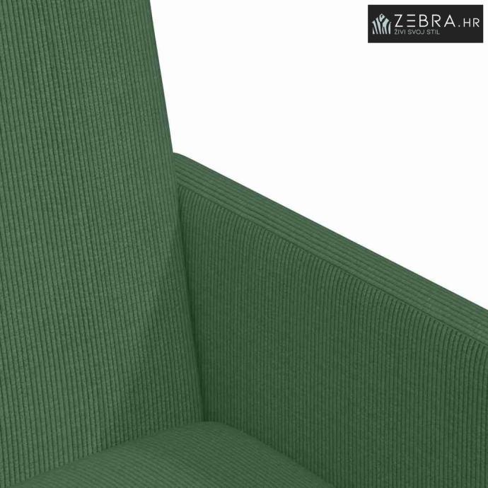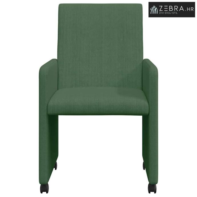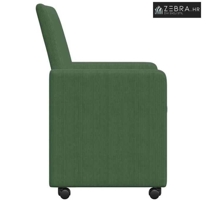 Kvalitetni materijali: Ova blagovaonska stolica ima fine korduroj tkanine koja pruža stil i trajnost. Jedinstvena tekstura tkanine dodaje notu sofisticiranosti, dok kombinacija šperploče i metala osigurava čvrstoću i dugotrajnost. Poboljšana ergonomija: Dizajnirana s fokusom na udobnost, stolica ima naslon koji pomaže pravilnom položaju kralježnice. Također ima pjenasto punjenje koje se prilagođava, osiguravajući udobnost čak i tijekom dugog sjedenja. Dizajn naslona za ruke: Ravni, uski nasloni za ruke ne samo da izgledaju dobro, nego i podržavaju udobnost. Savršeni su za druženje ili obroke — brinu se o opuštenosti ruku. Laka mobilnost: Ugrađeni kotači omogućuju jednostavno pomicanje stolice i prelazak iz jedne u drugu blagovaonicu ili čišćenje prostora bez gnjavaže. Jednostavna montaža: Iako je potrebna montaža, samo trebate odvijač i nekoliko jednostavnih koraka da svoju stolicu brzo stavite u funkciju. Ova jednostavnost osigurava da možete uživati u svojoj stolici čim prije. Boja: Siva zelena