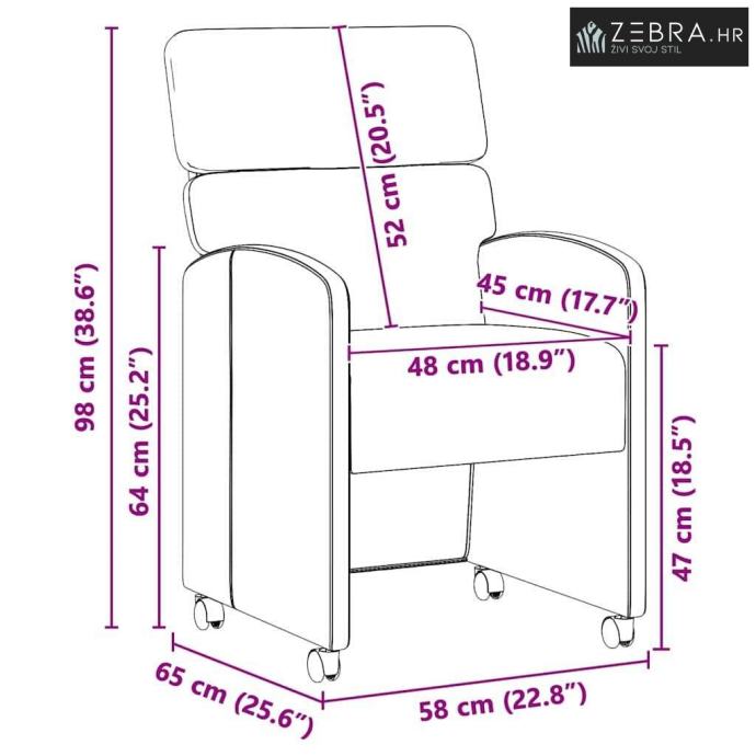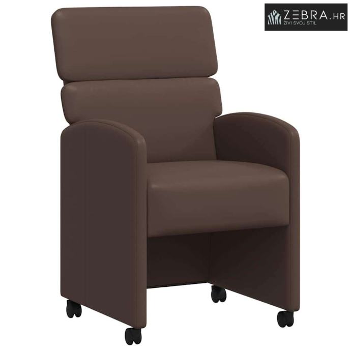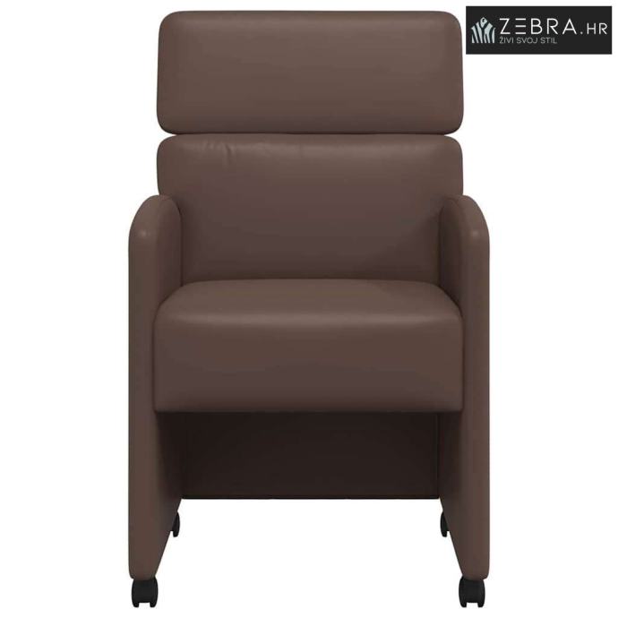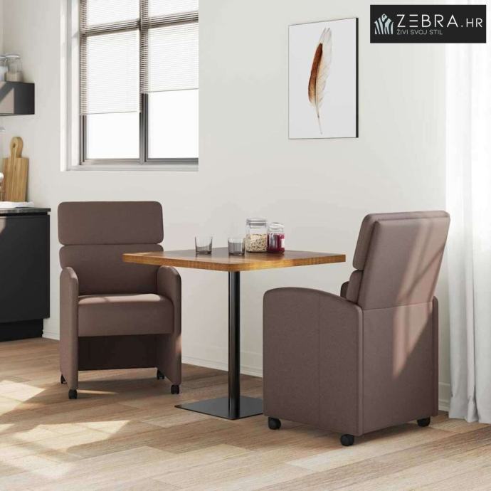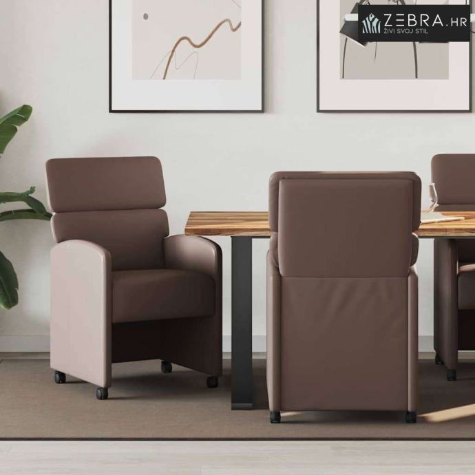 Materijali od umjetne kože: Površine stolica su od kvalitetne umjetne kože, kombinirajući sofisticiran izgled s ugodnim osjećajem. Odabran je zbog lakoće održavanja i dugotrajnog izgleda, što ga čini idealnim za svakodnevnu upotrebu u užurbanim domaćinstvima. Robustan okvir: Ove stolice imaju čvrste okvire od šperploče i metala, što osigurava dugovječnost i stabilnost. Snažan okvir donosi mir i sigurno sjedenje za vrijeme obroka. Metalni detalji dodaju dodir elegancije. Udobne ergonomske značajke: S ergonomskim dizajnom, ove stolice osiguravaju ugodno sjedenje tijekom dugih obroka ili razgovora, što omogućava opušteno uživanje u zajedničkim trenutcima. Fleksibilnost s kotačima: Opremljene kotačima, ove stolice lako se premještaju, što olakšava čišćenje i reorganizaciju prostora prema potrebama. Pomicanje sa stolica je jednostavno i ne oštećuje podove. Jednostavna montaža: Potrebno je malo montaže s običnim odvijačem. Postavljanje je lako za dvije uključene stolice i brzo ćete dobiti savršen dodatak svom prostoru. Boja: Smeđa