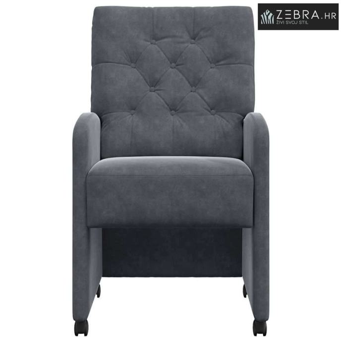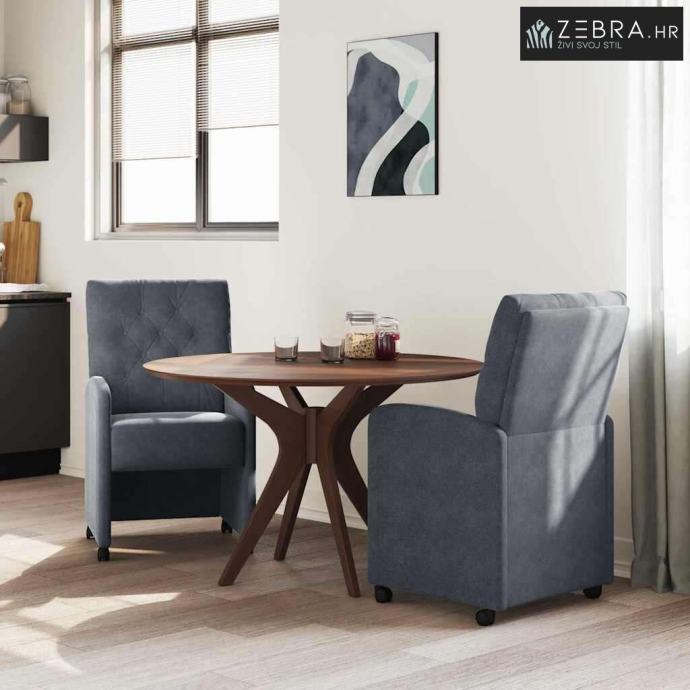 Površina od premium baršuna Ove stolice imaju luksuznu baršunastu tkaninu koja se glatko osjeća pri dodiru, čineći svaki prostor privlačnijim. Baršun dodaje blagi sjaj i bogatu teksturu, pa su ove stolice klasičan izbor za svaki blagovaonski prostor. Materijal se lako održava i osigurava dugotrajnost. Ergonomski dizajn naslona Oblik naslona poboljšava vašu posturu i smanjuje opterećenje tijekom dugog sjedenja. Ova funkcionalnost nudi dobru podršku, čineći ih izvrsnim izborom za blagovanje, bilo s radom, opuštanjem ili ugostiteljstvom. Oblik stolice se prilagođava vašem tijelu za maksimalnu udobnost. Stabilan okvir od šperploče i metala Čvrst okvir kombinira šperploču i metal, pružajući stabilnost i dugotrajne performanse. Odabrani materijali podržavaju veću težinu i dodaju stilsku eleganciju. Kotači za mobilnost Ove stolice dolaze s kotačima, pa ih možete lako pomicati po prostoru, olakšavajući aranžiranje. Bilo da premeštate za večeru ili čisteći, kotači omogućuju jednostavne promjene bez podizanja. Laka uputstva za njegu Održavanje ovih stolica je jednostavno s redovitim suhim čišćenjem. Usisavanje ili nježno četkanje pomaže očuvanju površine. Za mrlje izbjegavajte jake kemikalije i koristite nježne sredstva za čišćenje tkanina za dugovječnost i ljepotu. Boja: Tamno siva