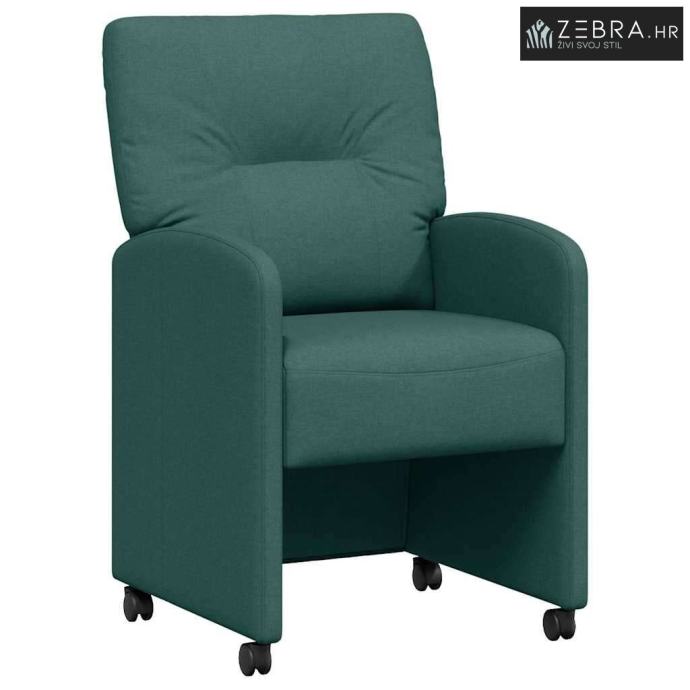 Ergonomski dizajn: Uživite u izvanrednoj udobnosti koja se brine za vašu leđa čak i tijekom dugih obroka. Tkaninski naslon omotava tijelo i pruža mekanu podršku, osiguravajući ugodno iskustvo za vrijeme hrane. Pokretna svestranost: Sa kotačićima, ove blagovaonske stolice jamče lako kretanje unutar vaše blagovaonice. Glatki kotači pomažu vam da lako premještate stolice kako želite, dodajući fleksibilnost za preuređivanje za goste. Sastav materijala: Ove stolice su od poliestera, drva i metala, što donosi lijepu ravnotežu snage i estetike. Ovaj spoj materijala osigurava da stolice zadrže svoj privlačan izgled i otpornost tijekom godina. Pojedinosti komponenata: Sa elegantnim leđima, ove blagovaonske stolice izgledaju sjajno iz svakog kuta, poboljšavajući interijer prostorije. Blago zakrivljeni nasloni za ruke savršeno prate obline tijela i povećavaju udobnost. Funkcionalni dizajn: Jednostavnost i funkcionalnost suvremenog stila ovih stolica idealno se uklapaju u razne blagovaonice. Bez obzira na prigodu, nude savršeno sjedenje uz eleganciju i udobnost. Boja: Tamnozelena