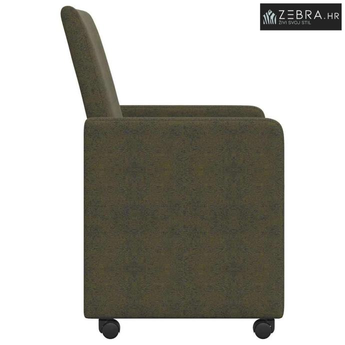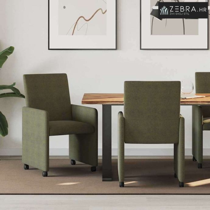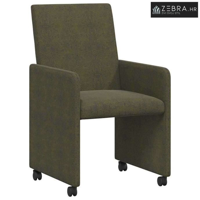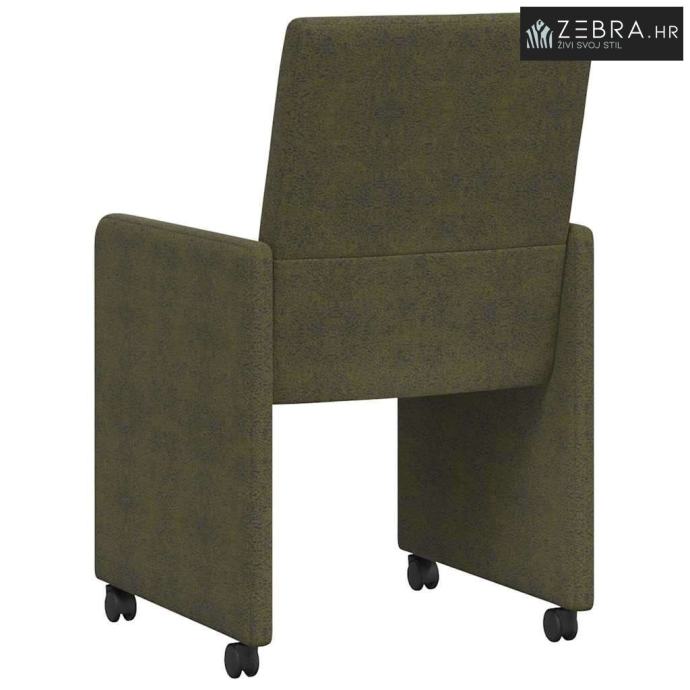 Ergonomski dizajn: Svaka stolica jamči udobnost, i duga sjedenja čine ugodnima. Visok naslon podupire kralježnicu, pomaže u boljoj posture i smanjuje napetost. Mobilnost: Kotači omogućuju lako preuređivanje, savršene su za višenamjenske prostore i štite podove od ogrebotina. Stilski umjetnička koža: Daje sofisticirani izgled, otporna je na mrlje i jednostavna za čišćenje, pa dodaje dašak elegancije. Okvir od dualnog materijala: Izrađen od šperploče i metala, pruža savršenu ravnotežu snage i stila, uz dugotrajnu stabilnost. Nasloni za ruke i udobna ispuna: Nasloni za ruke pružaju dodatnu udobnost, a pjenasta ispuna čini sjedenje mekim i podržavajućim, idealno za opuštene razgovore. Boja: Vojska zelena