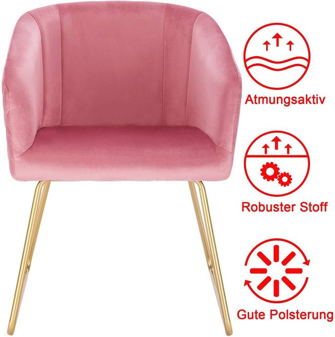 Uživajte u maksimalnoj udobnosti s ovom elegantnom blagovaonskom stolicom od baršuna. Sjedište je prekriveno mekim i glatkim baršunom, a ergonomski naslon i lagano nagnuti nasloni za ruke obloženi su visokokvalitetnom pjenom velike gustoće, pružajući osjećaj kao da vas stolica grli. Stolica je stabilna i izdržljiva zahvaljujući metalnom okviru i nogama, a zlatne trapezoidne noge povećavaju stabilnost i mogu podnijeti do 120 kg. Donji dio nogu ima zaštitu za pod, što sprječava ogrebotine i smanjuje buku pri pomicanju. Jednostavna montaža s uputama i označenim dijelovima omogućuje brzo slaganje. Stolica je svestrana i funkcionalna, idealna za blagovaonicu, dnevni boravak, ured, predsoblje ili kao stolica za toaletni stol. Njena jednostavna i elegantna forma lako se uklapa u svaki prostor.