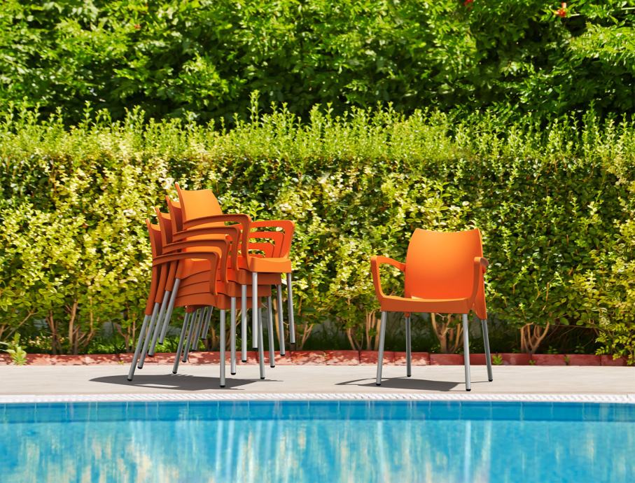 Ovaj materijal je otporan na UV zračenje. Fotelja se može koristiti u zatvorenom i na otvorenom. Stolica s rukonaslonom dostupna je u osam boja - bijela, tamnosiva, crvena, crna, zelena, narančasta, bež i žuta. Izrađena je od polipropilena koji je ojačan staklenim vlaknima. Stolica se može koristiti u zatvorenim, ali i na otvorenim prostorima. Opremite svoju terasu kvalitetnim namještajem i uživajte na otvorenom. Stolica je roizvedena j brizganjem polipropilena ojačanog staklenim vlaknima dobivenog najnovijom generacijom tehnologije zračnog lijevanja neutralnih tonova. Za unutarnju i vanjsku upotrebu.Za komercijalnu i privatnu svrhu.