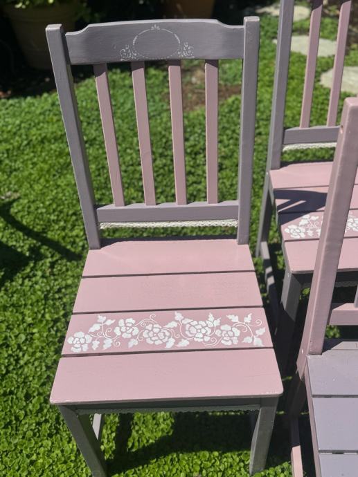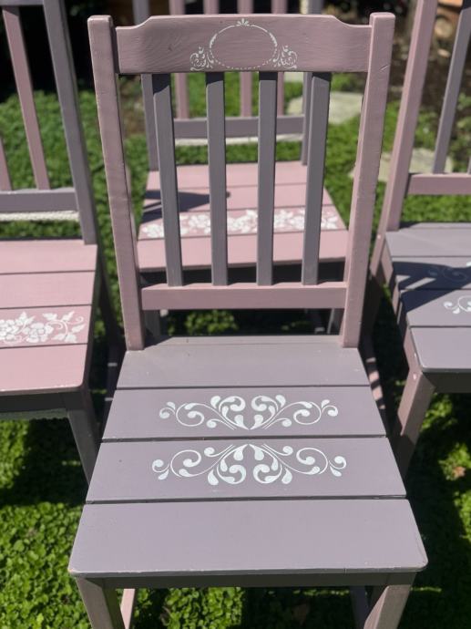 Prodajem četri oslikane stolice od punog drva. Stolice su rađene za knjigu o unikatnim tehnikama oslikavanja. Dvije i dvije stolice imaju iste boje i uzorke a sve četri čine komplet.
