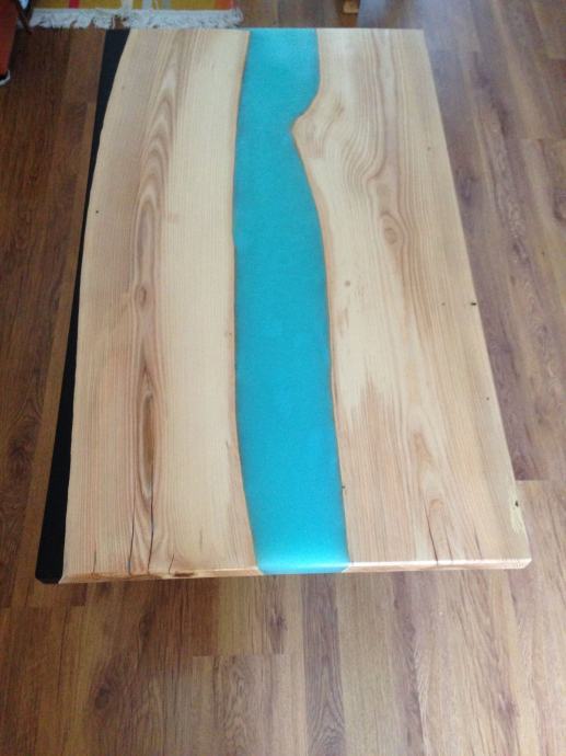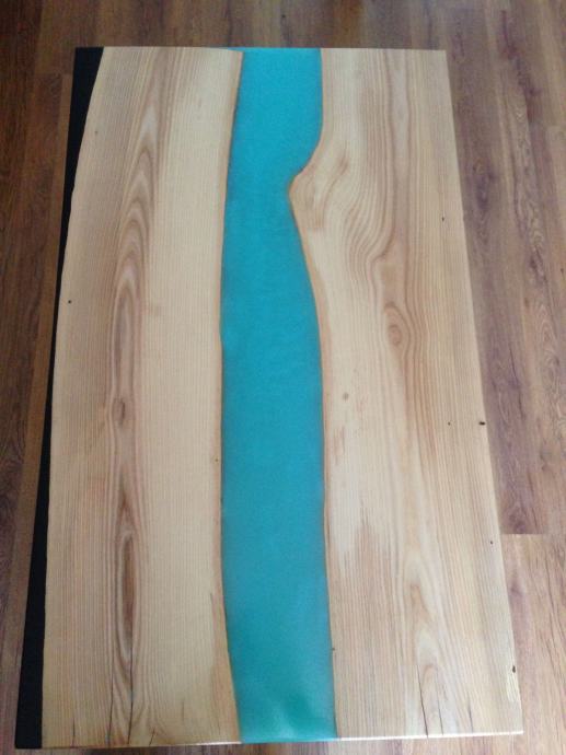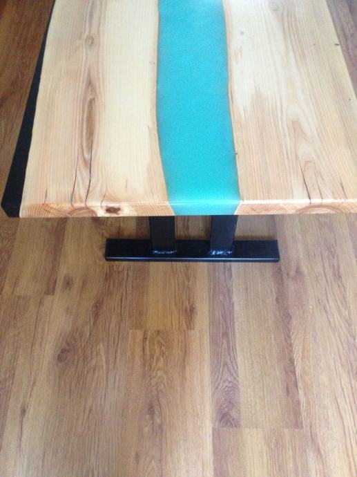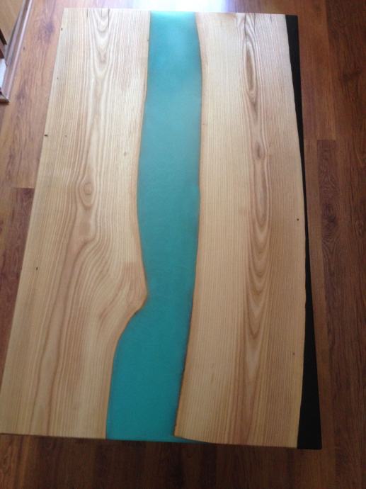 Unikatni stol od epoxy smole, dvije razlicite boje, zeljezne noge, drvo Jasen.