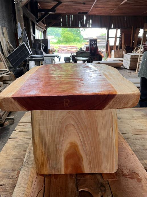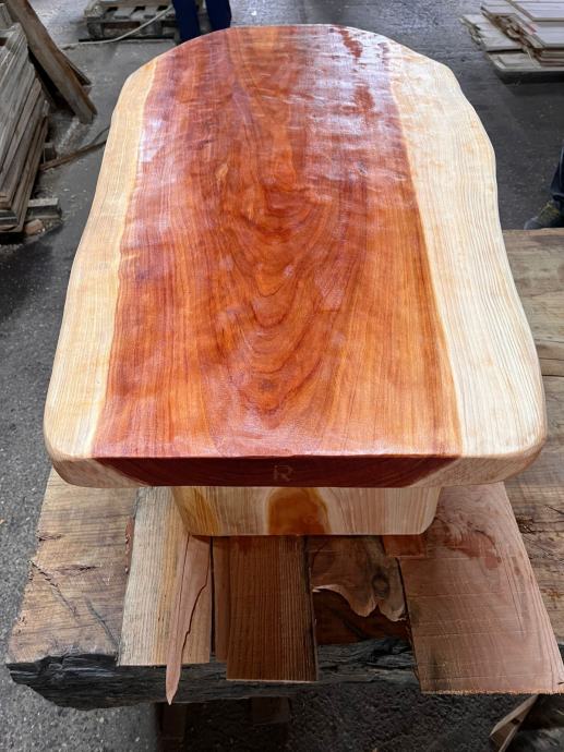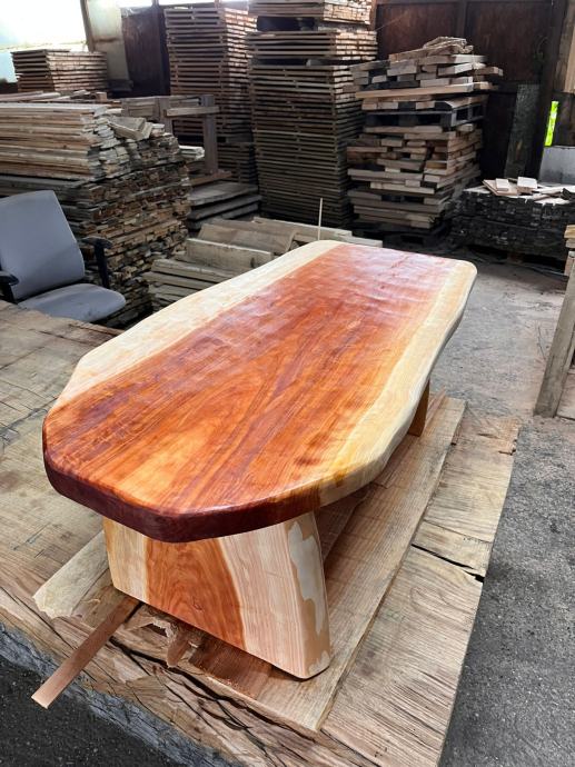 Unikatni stolić dim. 105x55x45 (visina), prigodno za dn.boravak, predprostor. Izrađen od čempresa, prekrasne prirodne šare, premazan tikovinom više puta.