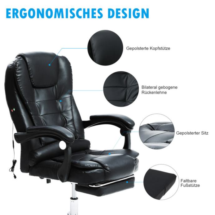 Sa 6 masažnih točaka na struku i različitih intenziteta, kao i priloženim daljinskim upravljačem, stolica će vam definitivno donijeti najveću udobnost.
