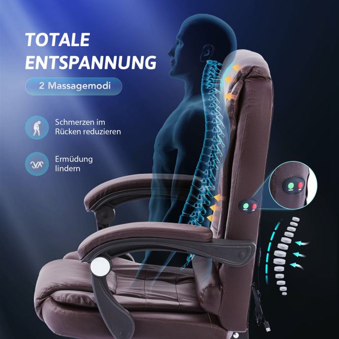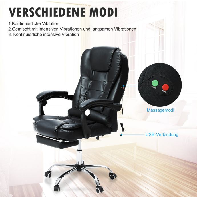 aša uredska stolica dizajnirana je za duge sate opuštenog rada. Stolica je opremljena funkcijom vibracijske masaže leđa za ublažavanje umora i smanjenje stresa. Ovom se značajkom može jednostavno upravljati putem USB kabela (bilo koji USB priključak će obaviti posao, prijenosno računalo, power bank ili čak vaš automobil). Visokokvalitetna stolica nudi maksimalnu udobnost za vrat, leđa i bokove.