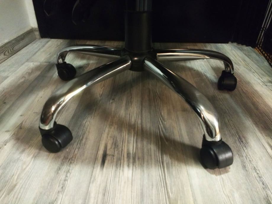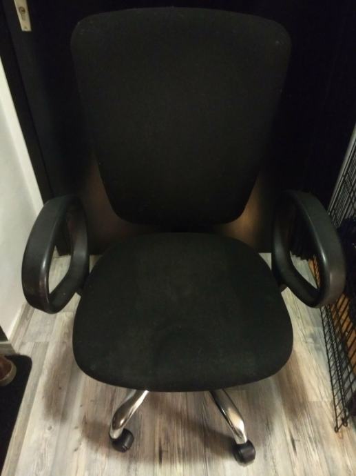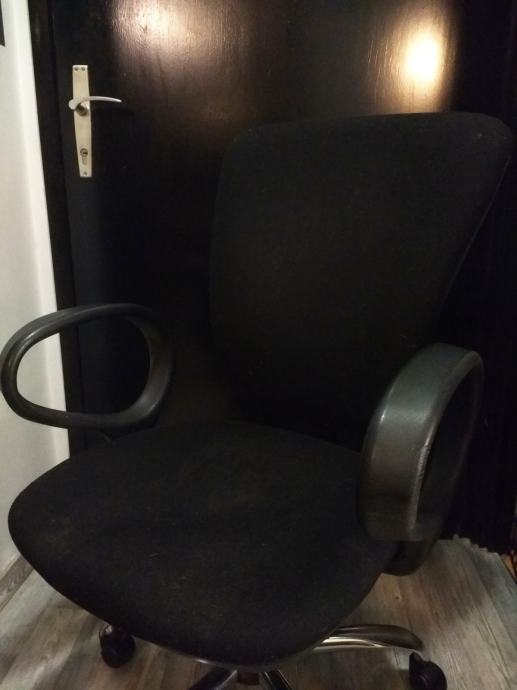 Rabljeni uredski stolac. Š/D:50cm/50cm, visina sjedišta 45-55 cm, visina naslona 100-110 cm. Podesiv po visini, podesiv nagib zasebno naslona i sjedišta. Metalna baza, plastični kotači, sjedište i naslon platno, spužva i plastika.