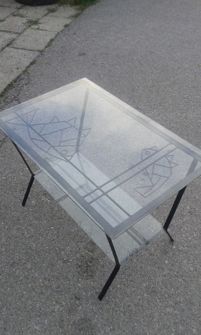 Vintage dizajnerski stolić od željeza i stakla, retro design, ribice
