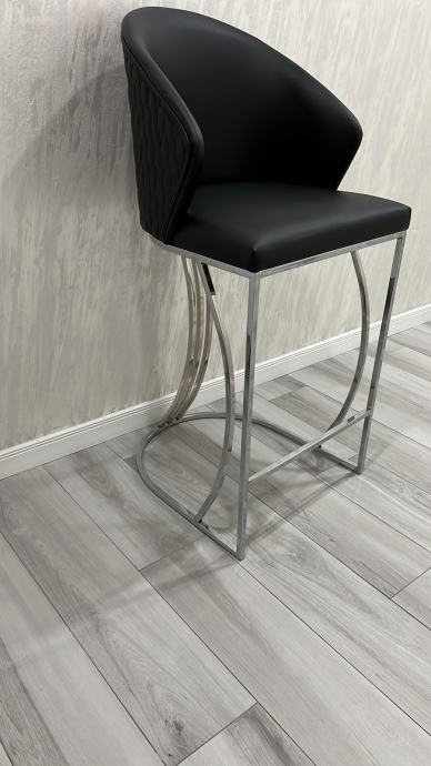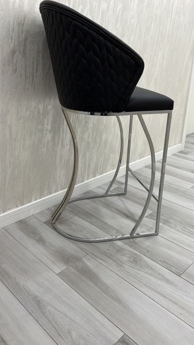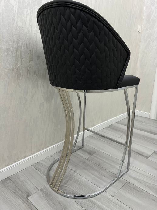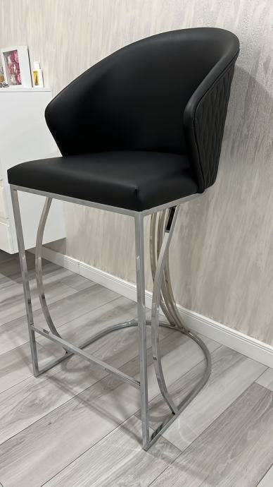 Visoke barske stolice, dimenzije: visina sjedišta 75cm, ukupna visina stolice 114cm, širina 54cm.