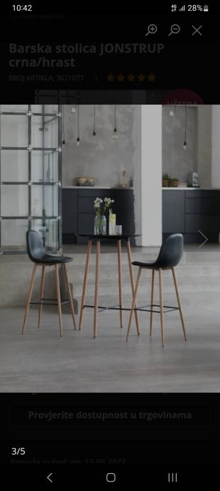 Prodaje se stol I dvije barske stolice,kupljene u JYSK-u ali samo stajalo,trebalo se koristiti za brzo jelo da se nejde u blagavaonu, ali ipak ostalo samo stajati,kao novo.