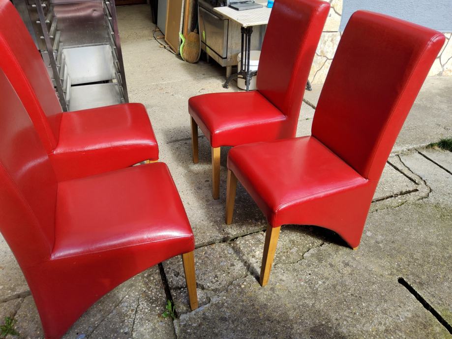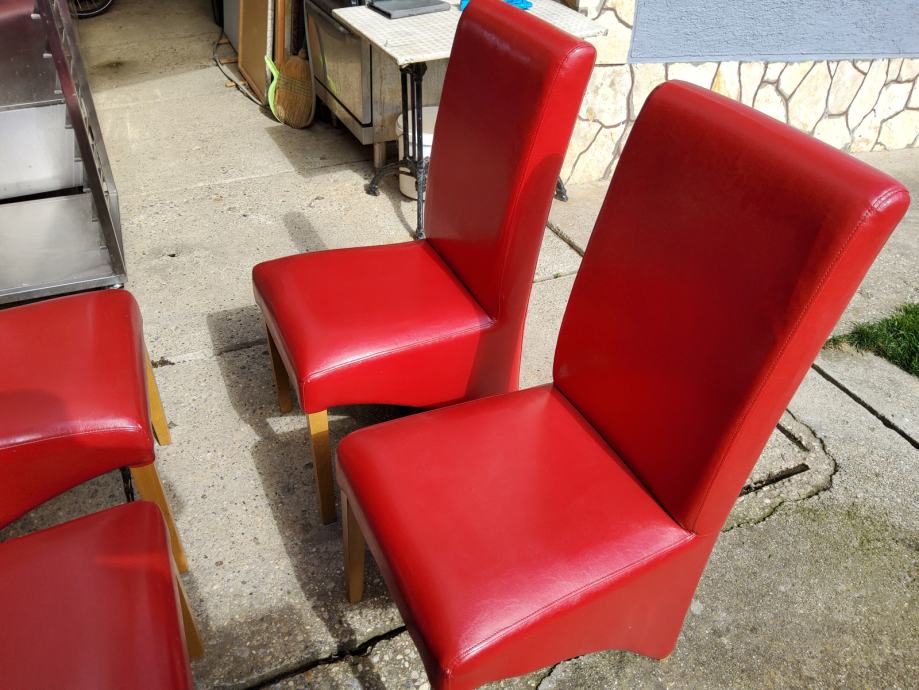 Stolice iz naslova u vrhunskom stanju očuvano je I neoštečeno vrhunski proizvod kupljeno u Austriji jako čvrste I stabilne konstrukcije jako udobne za sjedenje Izrađene od masivnog drva i kvalitetne kože nije neki jeftin proizvod iz šoping centra Korištene samo par puta privatno za neke svečanosti ima oko 40 kom prodajem u kompletu ili pojedinačno cijena je 43 eura po kom nova košta 109 eura molim poziv na broj 092 1223 023