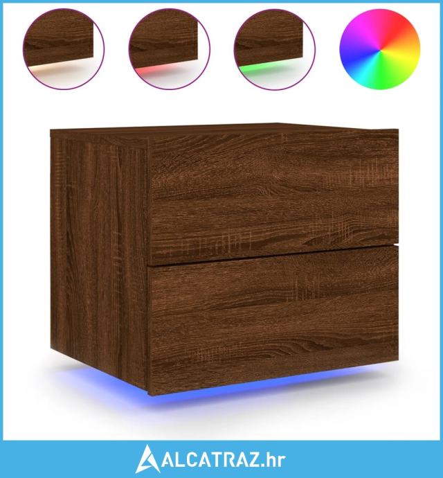 Zidni noćni ormarići s LED svjetlima 2 kom smeđa boja hrasta - NOVO