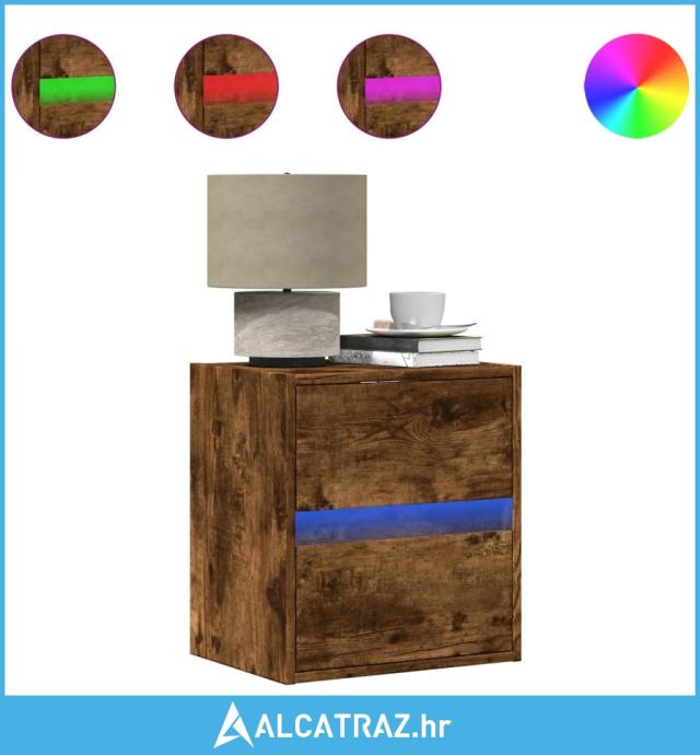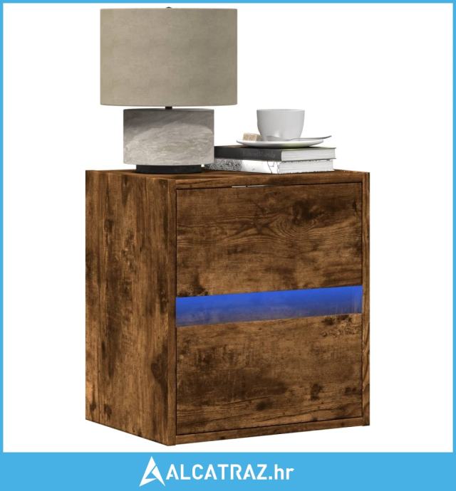 Zidni noćni ormarići s LED svjetlima 2kom boja dimljenog hrasta - NOVO
