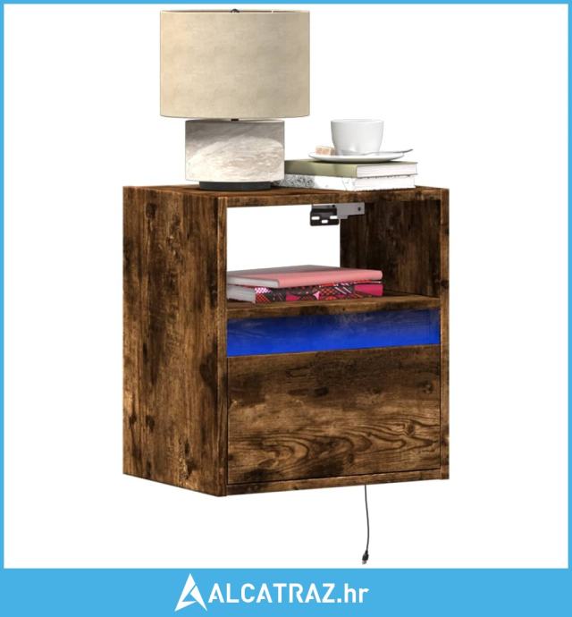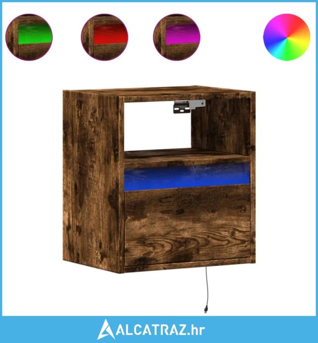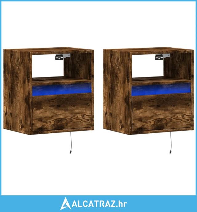 Zidni noćni ormarići s LED svjetlima 2kom boja dimljenog hrasta - NOVO
