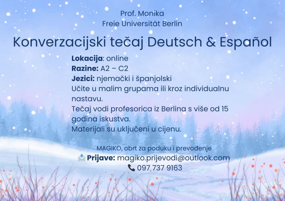 Tečajevi i konverzacija u mini grupama 12 € po polazniku