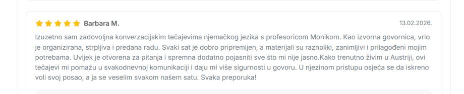 Podučavam polaznike svih uzrasta i razina te ih učim kako njemački i španjolski aktivno koristiti u svakodnevnom životu.