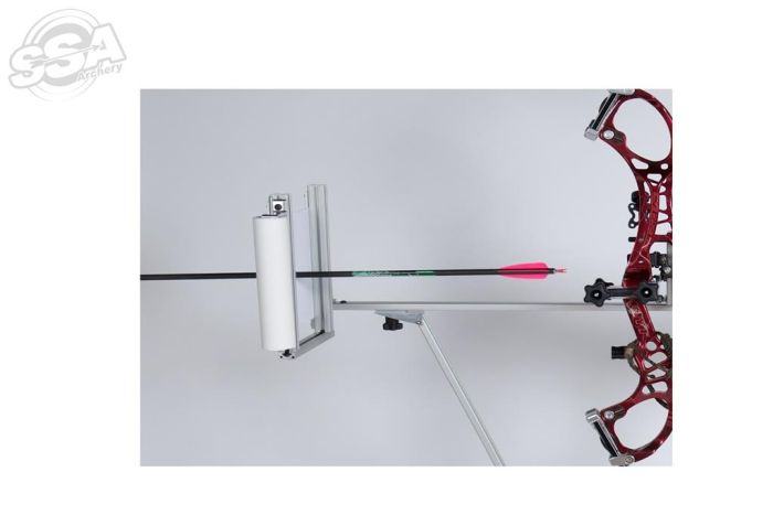 Coop's Bowsmith is an American manufacturer of archery tuning tools. The Bowsmith Pro is an aluminum shooting machine with paper tuner, chronograph holder and upper limb brace that can be used as a draw-board too.Lightweight aluminum construction.Shooting machine that can be used as a draw-board.Upper limb brace keeps the bow in the correct position.Inc. Chronograph holder & paper tuner.