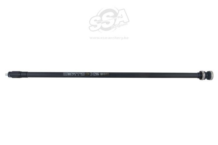 The Certo X2 is built for tournament archers, competing in real world shooting conditions.Based on the popular Certo, we have refined an already proven winner. Now with lighter mass and streamlined components. - 19mm, high rigidity carbon shaft - Solid aluminium mounting bushings - Silicone damper unit (included) - Slimline Solid Steel weights (included) - Internal Foam Damper - Black Satin Finish