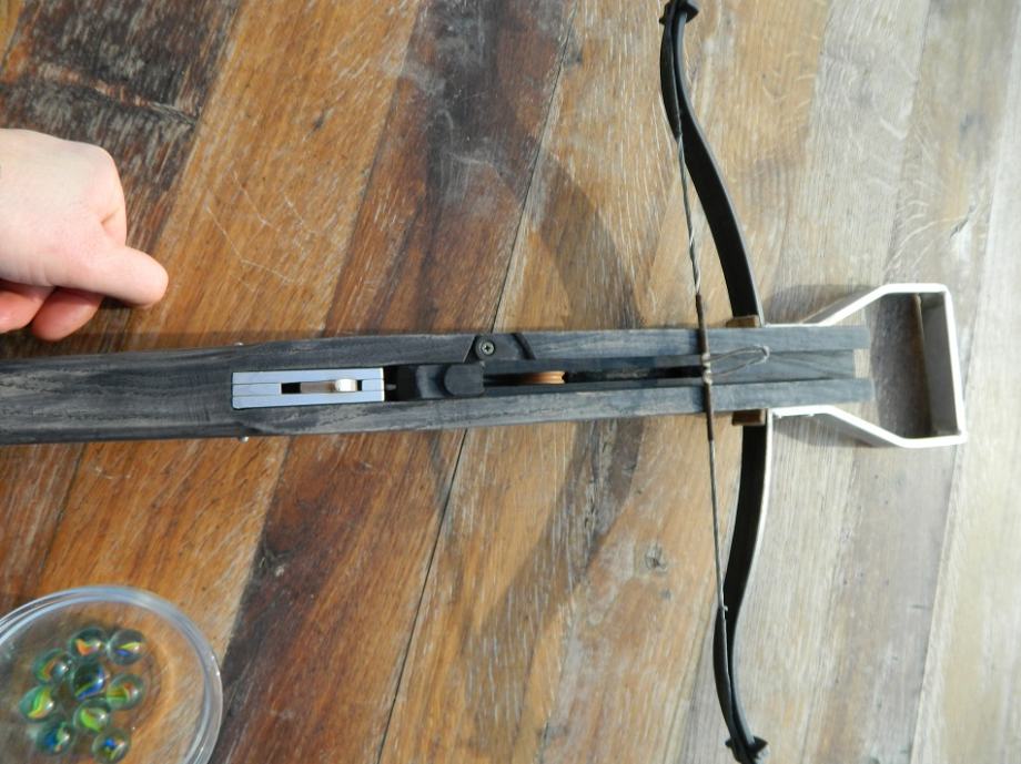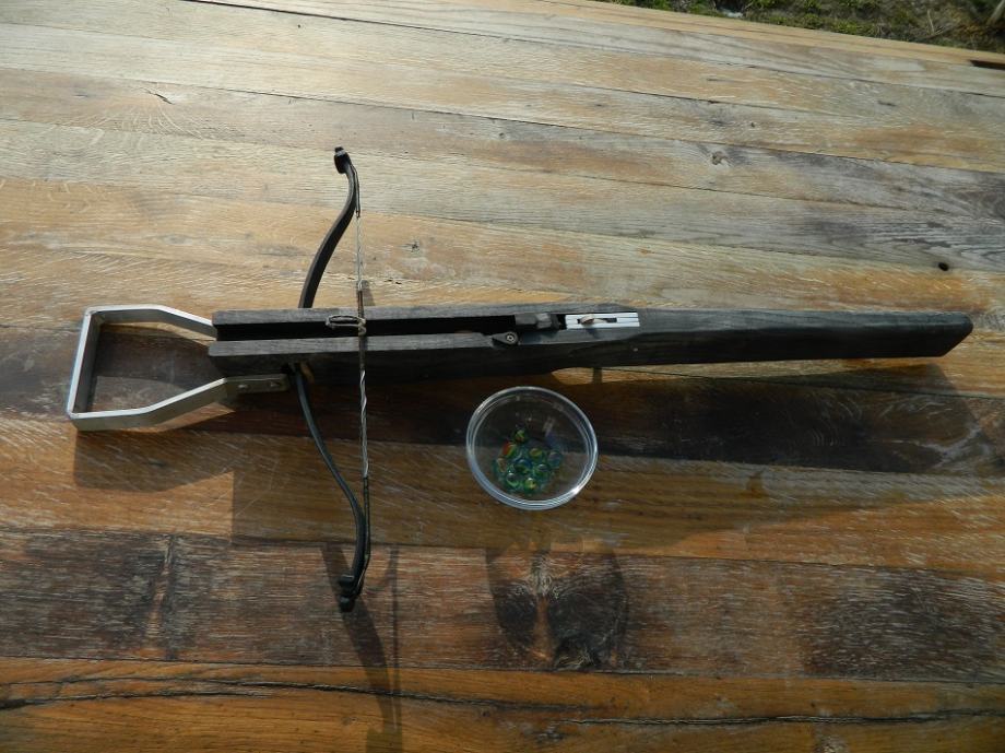 Samostrel 80lb natezne snage ispaljuje kuglice od 8 do 17mm na priloženom videu možete vidjeti opis