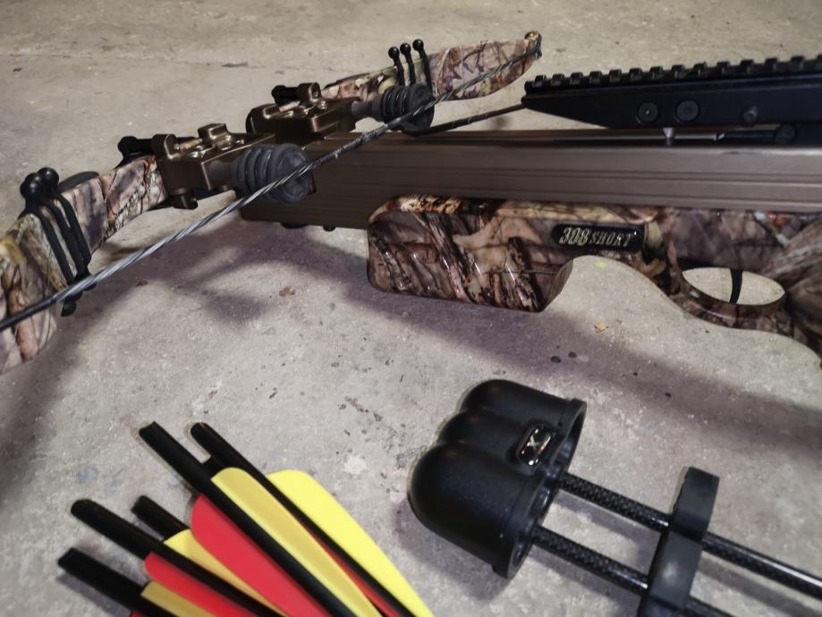 Radi smanjenja kolekcije prodajem svoj Excalibur Short 308, ne proizvodi se vise (nije Mag Short 308) medju najtrazenijim rabljenim modelima tog poznatog kanadskog proizvodjaca. A trazen je jer je kratak, lagan, lako se nategne a i dalje je brz samostrel (308 FPS). Excalibur ima dozivotnu garanciju, ako se nesto pokvari ili pukne, posaljete im email sa slikama ostecenja i kroz 2 tjedna dobijete novi dio iz Kanade. I oni koriste zakrivljene lukove umjesto slozenih sa koluturama, tako da se i nema sta pokvarit.
