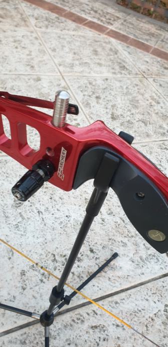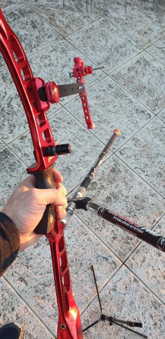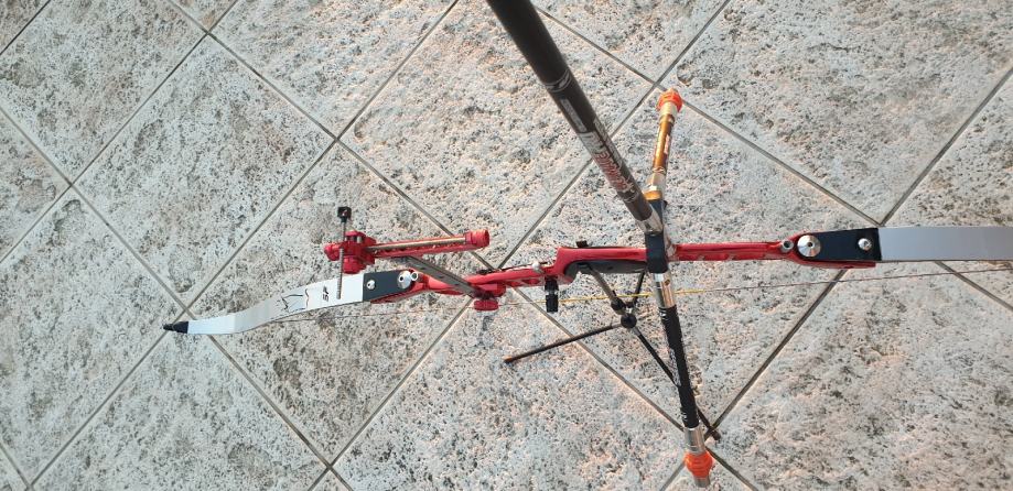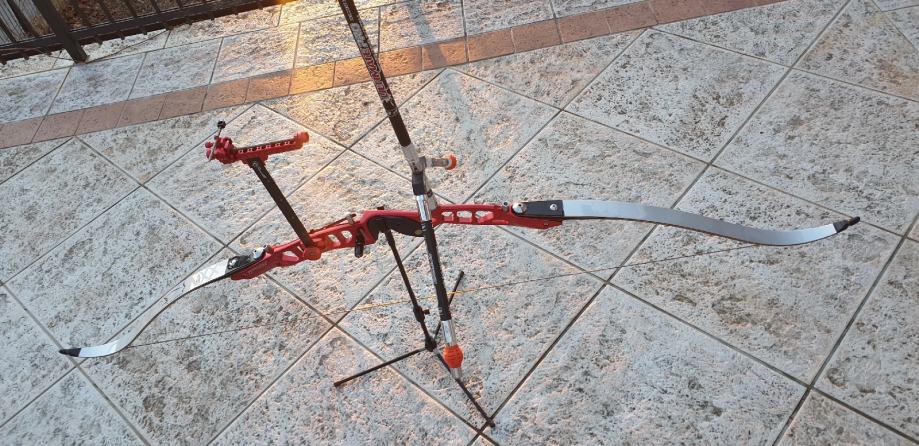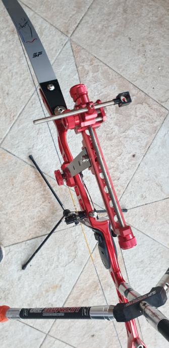 SF archery Olympic luk set sa stabilizacijom, nišanom, button-om, stalkom i torbom. Snaga kuka je 35 funti.