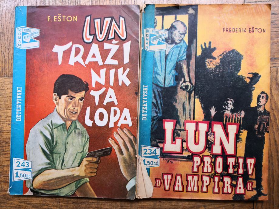 Prodajem dva romana Frederika Eštona: Lun traži Niktalopa i Lun protiv vampira, detektivski roman, Roto biblioteka, 1968., cijena po romanu 2 eura.