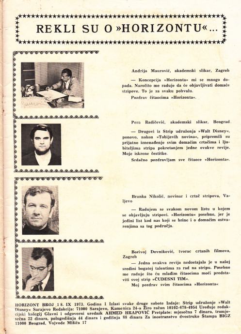 Strip Horizont - Broj I, Godina I - Sarajevo 1973