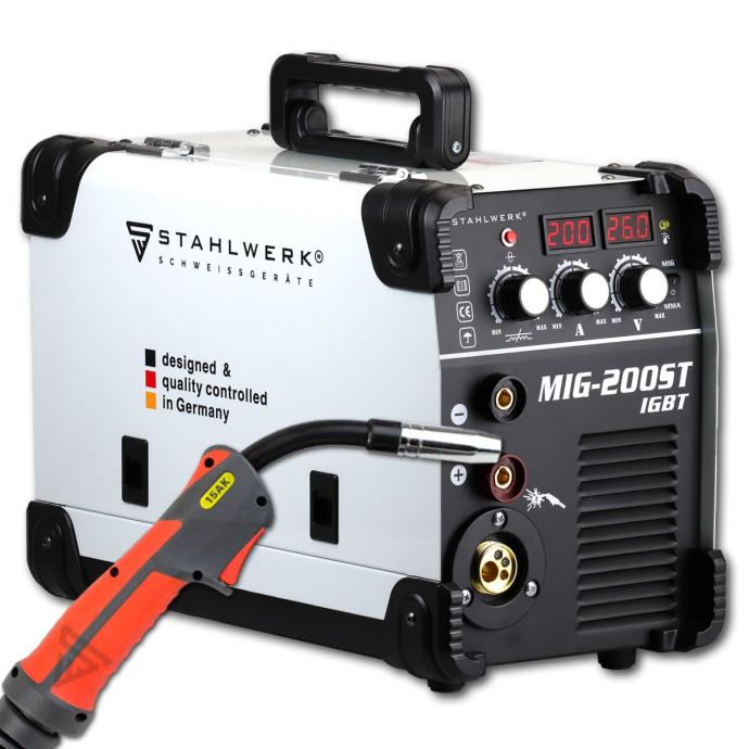 STAHLWERK MIG 200 ST IGBT - aparat inverter plin MIG MAG sa 200 Ampera, pogodan za žicu od fluksa, s MMA ARC , bijele boje,
