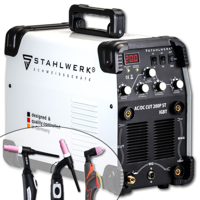Stroj za zavarivanje AC / DC TIG 200 PLASMA ST ima najmoderniju moćnu IGBT tehnologiju. IGBT je evolucija moćne MOSFET tranzistorske tehnologije. Dobivene posebne značajke kao što su kontrola velike brzine i preciznosti daju uređajima izvrsnu kvalitetu u zavarivanju i rezanju.