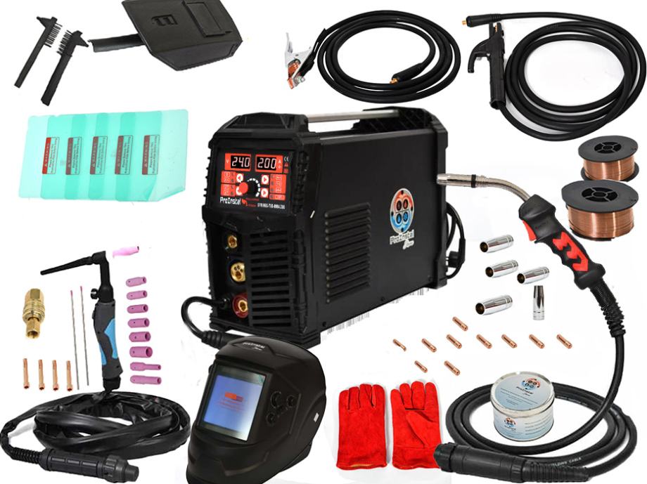 Aparat za zavarivanje PROINSTAL SYN MIG TIG MMA 200 3 u 1 aparat je za zavarivanje sljedećim karakteristikama: