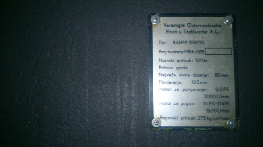 Prodajemo apkant hidrauličnu presu 100 tona širine 3 metra.