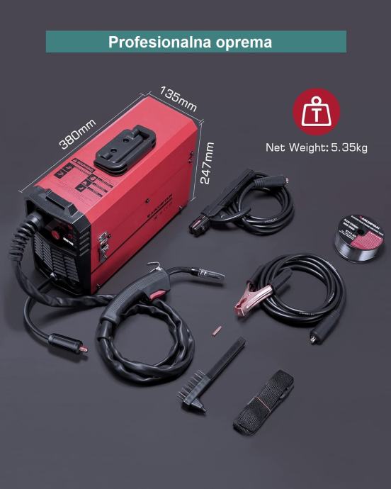 Kompaktan aparat za zavarivanje vrhunske kvalitete. Sinergijska opcija značajno pojednostavljuje zavarivanje jer odabirom debljine žice aparat automatski podešava snagu, napon i brzinu žice.