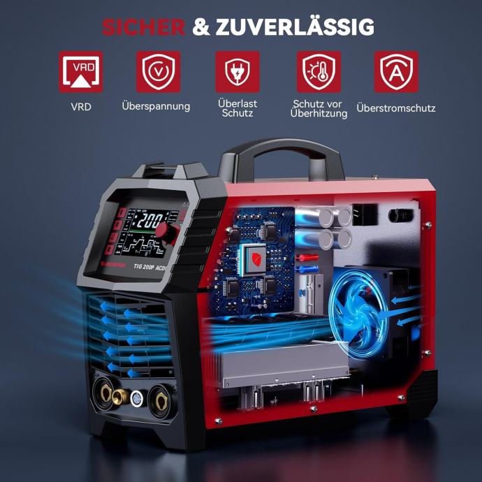 1 x Aparat za TIG Zavarivanje ARCCAPTAIN TIG200P ACDC