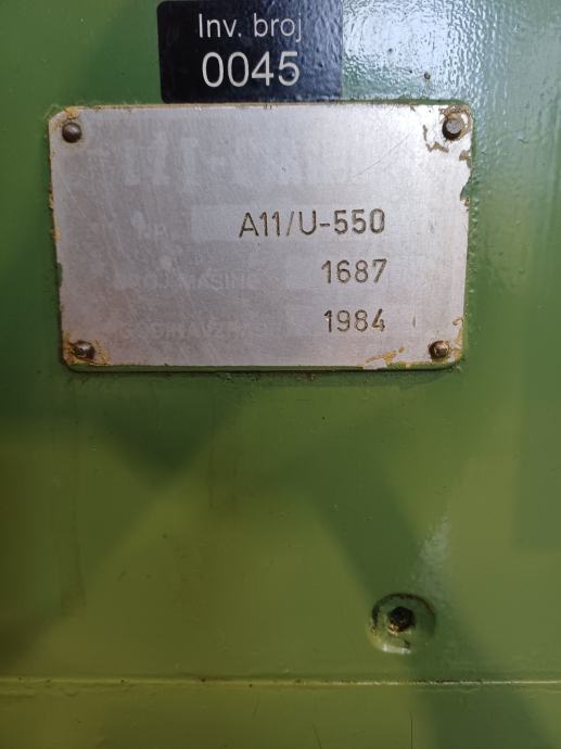 Prodaje se brusilica Kikinda A11/U-550, rabljena, u dobrom stanju i spremna za rad. Strojevi ove vrste koriste se za vanjsko i unutarnje brušenje metalnih dijelova u radionici i industriji.