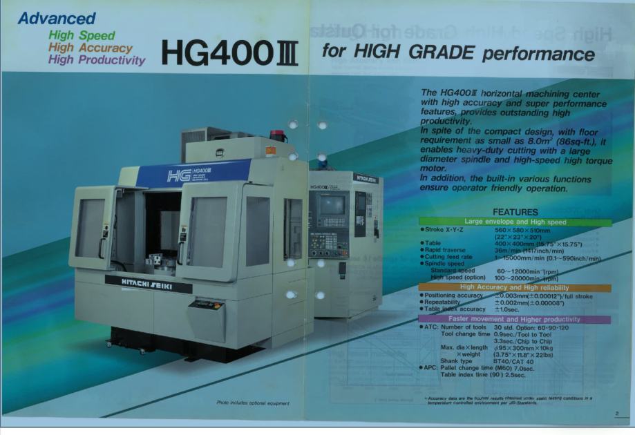 Prodajemo 4-osni horizontalni obradni centar HITACHI SEIKI HG400