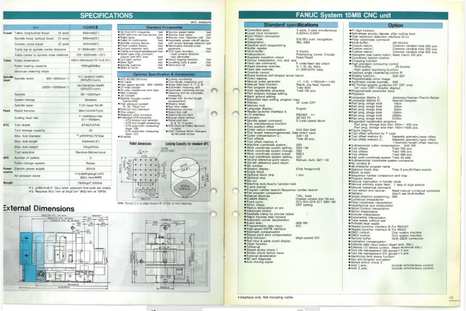 ima dvije izmjenjive palete 400x400mm i magazin sa 30 alata SK40