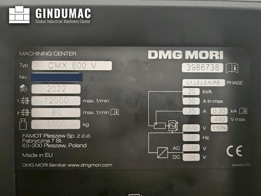 Ovaj vertikalni obradni centar DMG MORI CMX 600 V proizveden je 2022. Ima 4 osi s NC rotirajućim stolom (4. os) tvrtke Lehmann s neizravnim mjernim sustavom. Veličina stola je 900 x 560 mm. Obradni centar opremljen je DMG MORI SLIMline® Control temeljenim na Siemensu i izravnim mjernim sustavom u X/Y/Z. Kao dodatak dolazi s transporterom strugotine (strugala traka, kapacitet spremnika: 200 l) i Renishaw komplet senzorskih sondi za Siemens. Pogledajte pregled tehničkih specifikacija u PDF-u (DE) u prilogu.