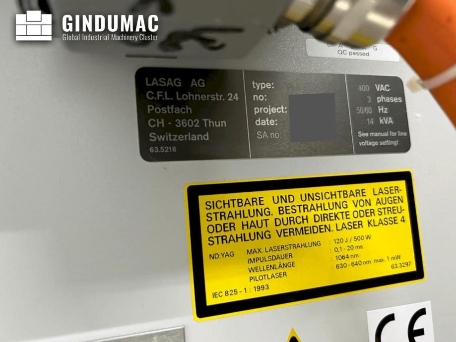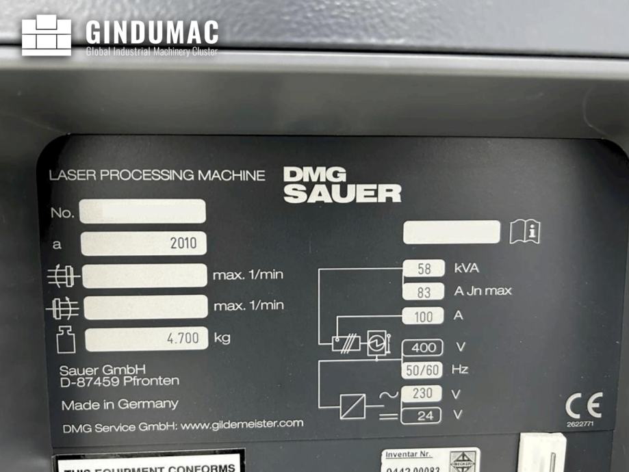 Ovaj DMG SAUER LASERTEC 50 5-osni laserski precizni stroj proizveden je 2010. godine u Njemačkoj. Trenutno je još uvijek u proizvodnji, ali je izravno dostupan. U vrlo je dobrom stanju s ukupno 81.142 sata rada stroja i 14.393 sata rezanja. Stroj dolazi s laserom LASAG FLS 352 A (2011.), sustavom za ekstrakciju Keller L-CUT-1-P2-B60-V (2010.) i rashladnim uređajem KKT OLB 10 SA (2014.). Pogledajte priložene originalne tehničke specifikacije kao PDF na njemačkom jeziku.