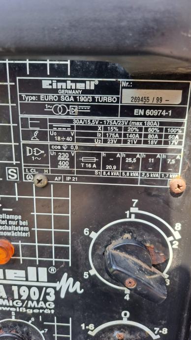 Maksimalna struja zavarivanje 190 ampera