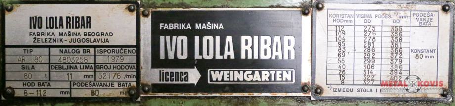 Ekscentar preša Ivo Lola Ribar Železnik AR-80