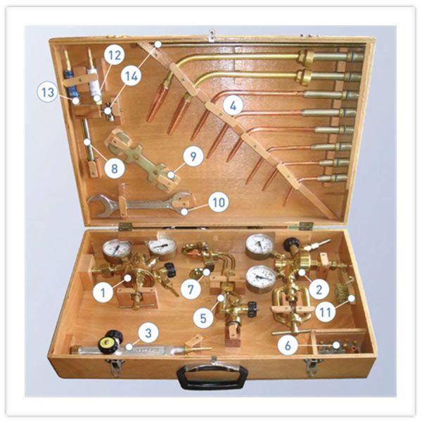 Komplet od 8 plamenika tip 147.5. (6 plamenika) plus plamenici 147-7 i 147-8 za zavarivanje čeličnih materijala debljine od 0,5 do 30 mm