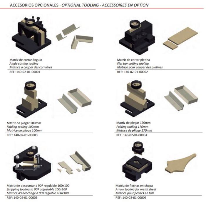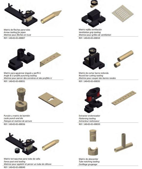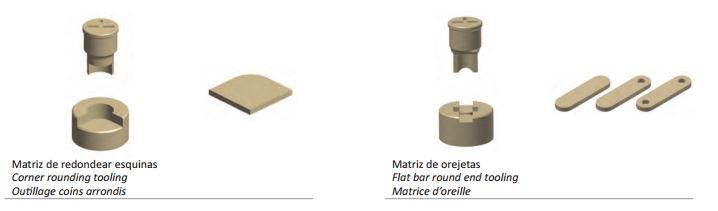 Stroj se isporučuje sa bazom za probijanje, prihvatom matrice i kapom za prihvat probijača.