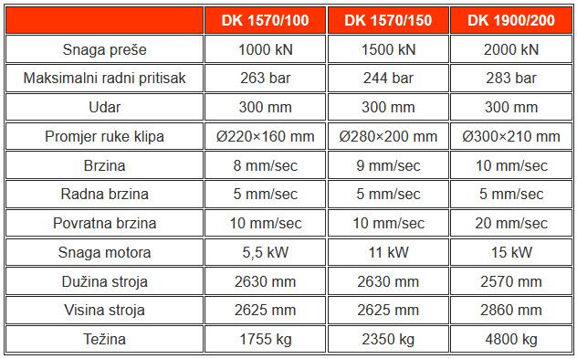 Tehničke karakteristike za pojedini model moguće je vidjeti na slikama.