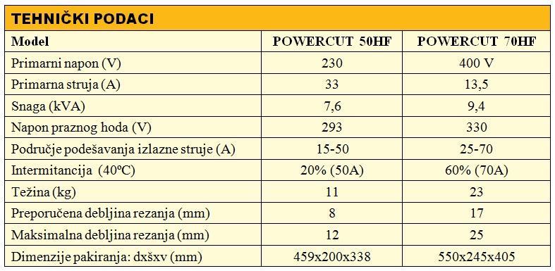 Tehnički podaci POWERCUT 50HF: