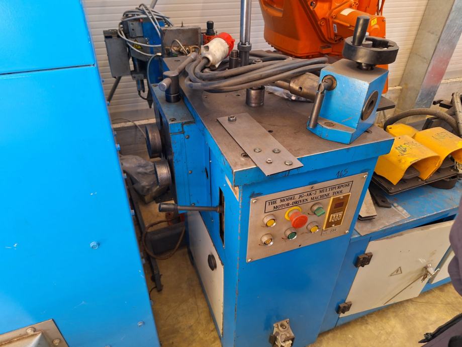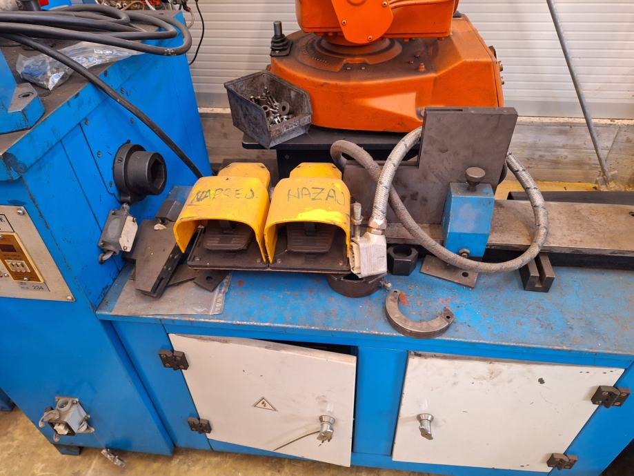 Prodaja se kovaški stroj za izdelavo elementov za kroparijo,za kovaške vrata ali ograje.Na eni strani so trije valji za zvijanje profilov,ploščatega jekla,na drugi strani je priprava za zvijanje kvadratnih palic v spiralo ali podobno.In še priprava za izdelavo okraskov-metuljčkov.Stroj je malo rabljen.