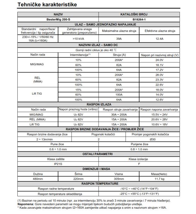 Raspon brzine dodavanja žice : 2 ÷ 13m/min